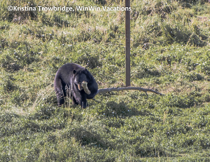 Black bear with a stick