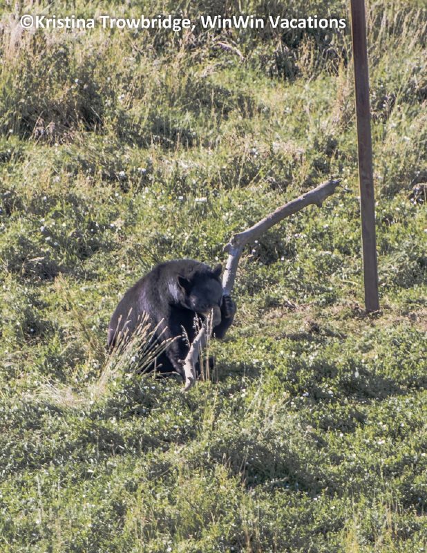 Black bear with a stick