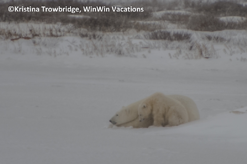 Mom and cub in snow storm