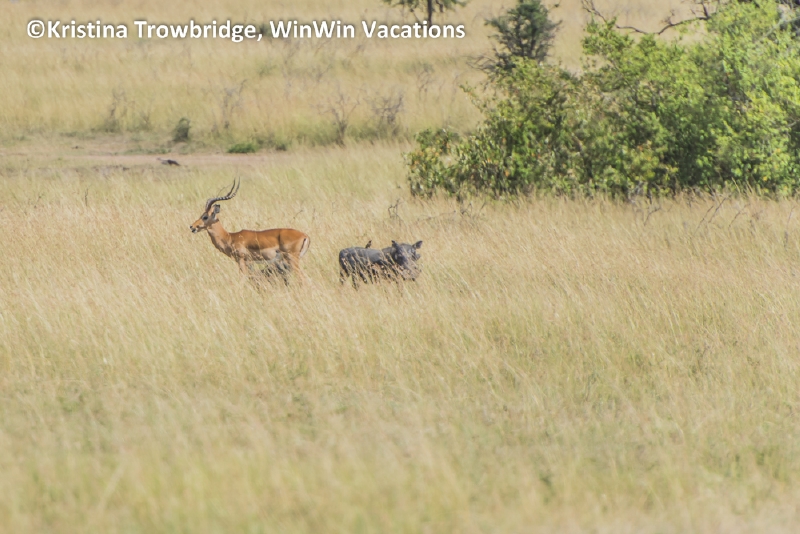 Impala & warthog with wattled starling
