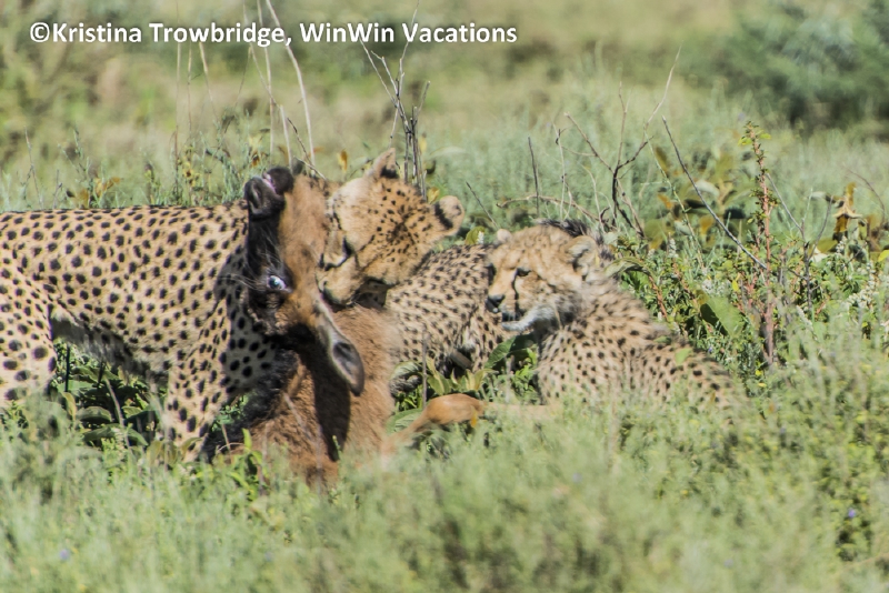 Cheetah cubs arrive at kill