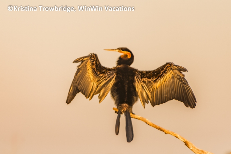 African darters at sunrise