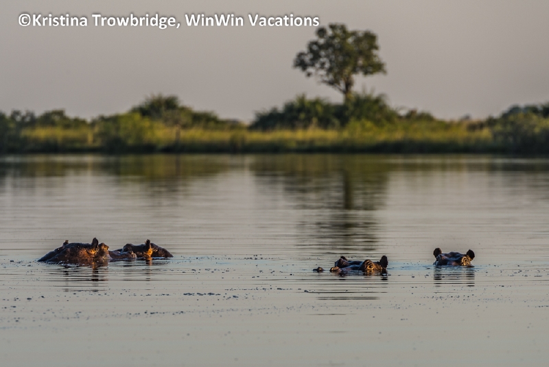 Hippos at sunset