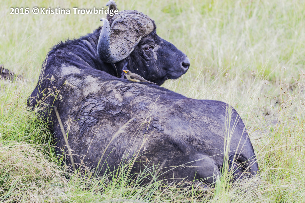 Cape buffalo with oxpecker