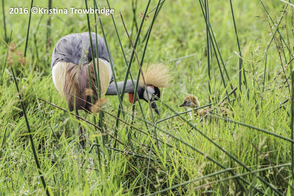 Grey Crowned Crane and chick