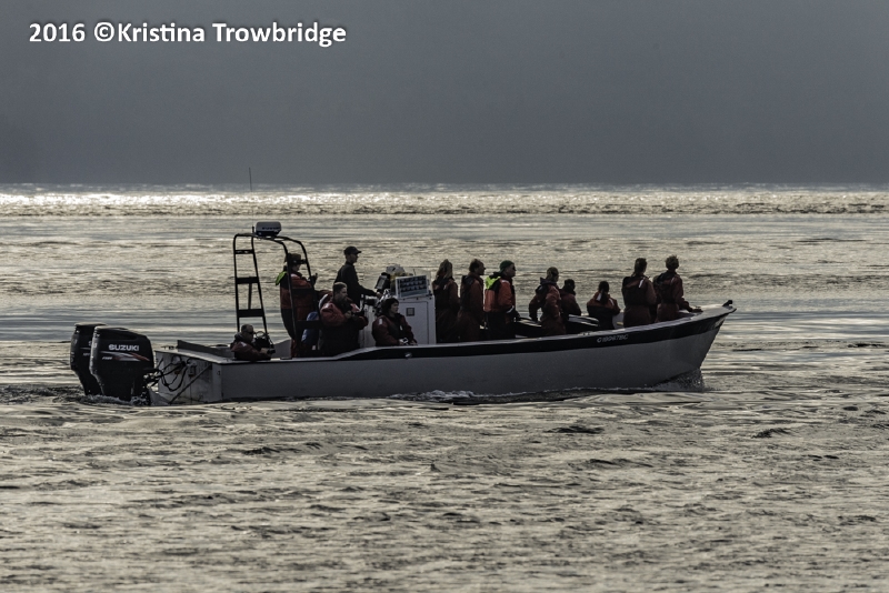 Whale watchers at sunset