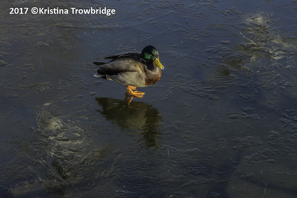 Mallard drake walking on ice
