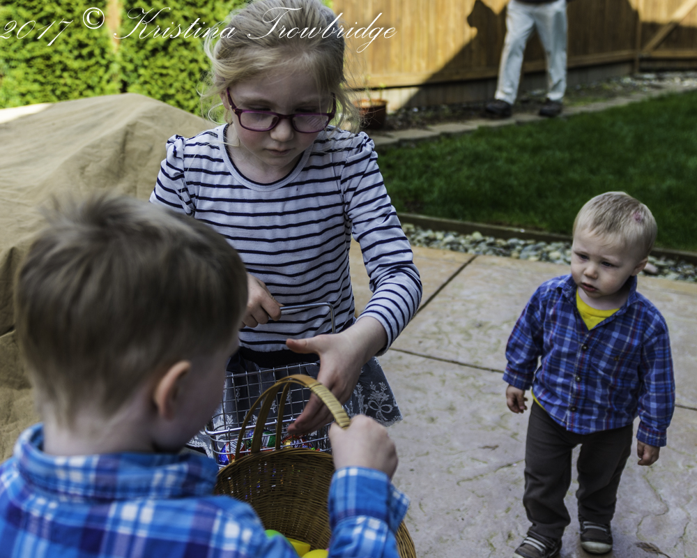 Grandkids are egg hunting