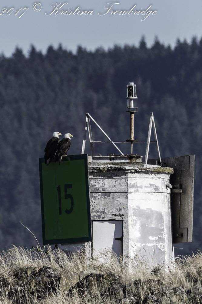 Bald eagles on Peapod Rocks