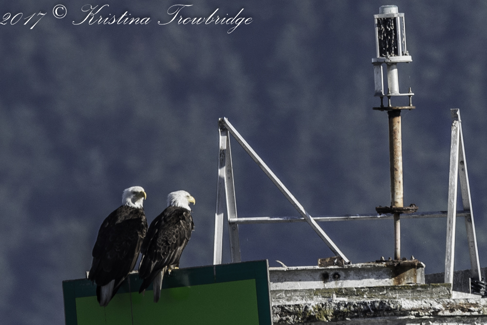 Bald eagles on Peapod Rocks