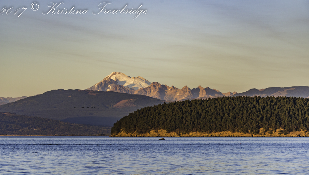 Sunset with geese and Mt. Baker
