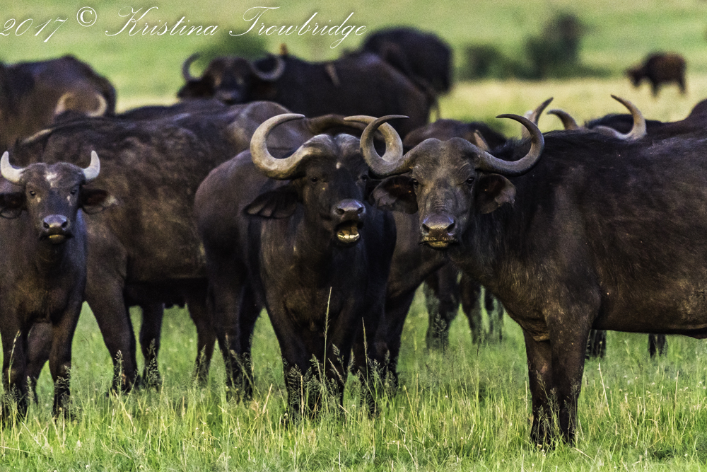 Breeding herd of buffalo sunset