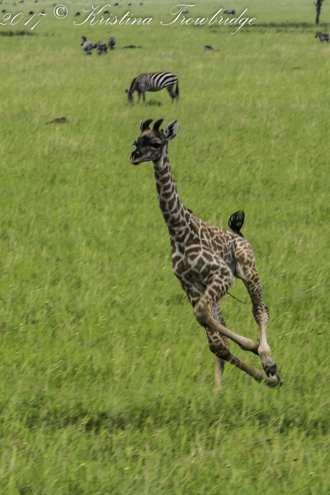 Baby giraffe running