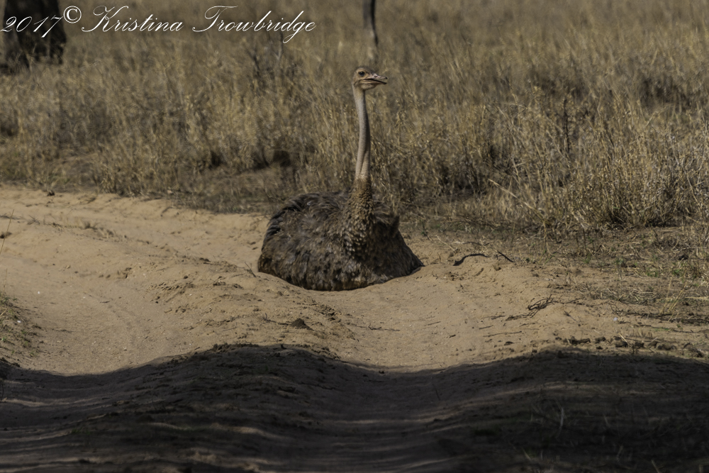 Female ostrich in the road