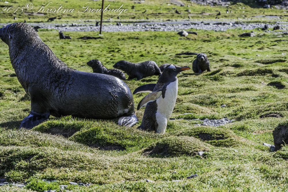 Gentoo penguin & Fur seal pup