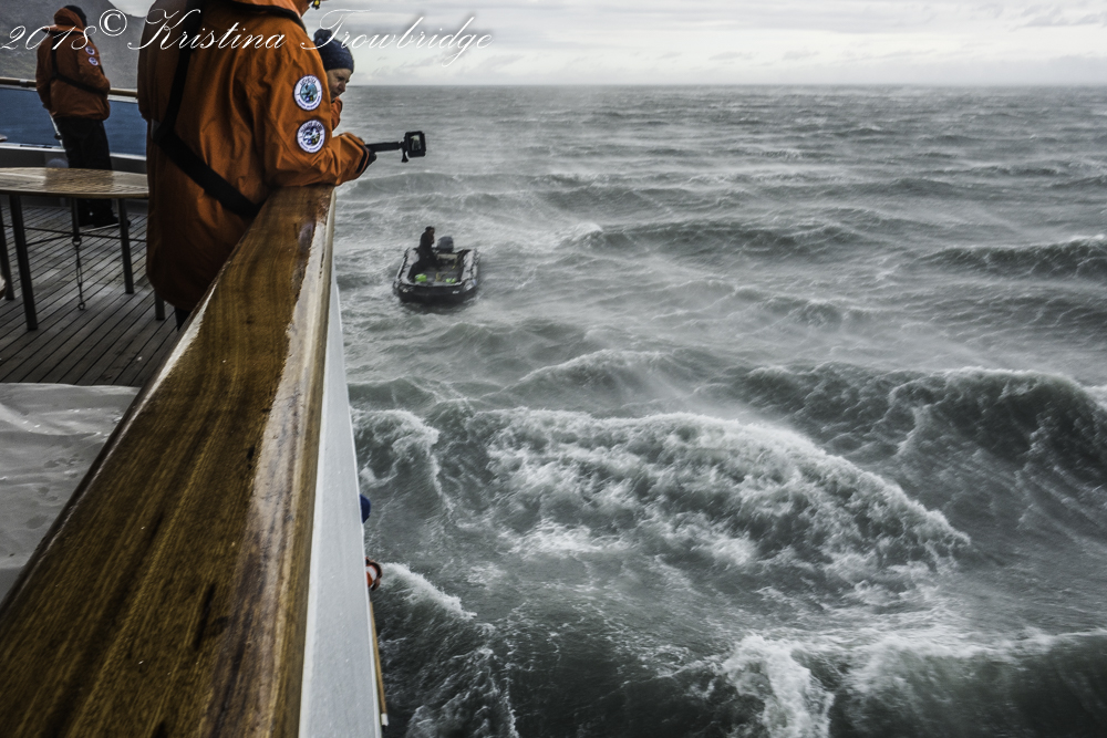 Hoisting the zodiac in hurricane force wind