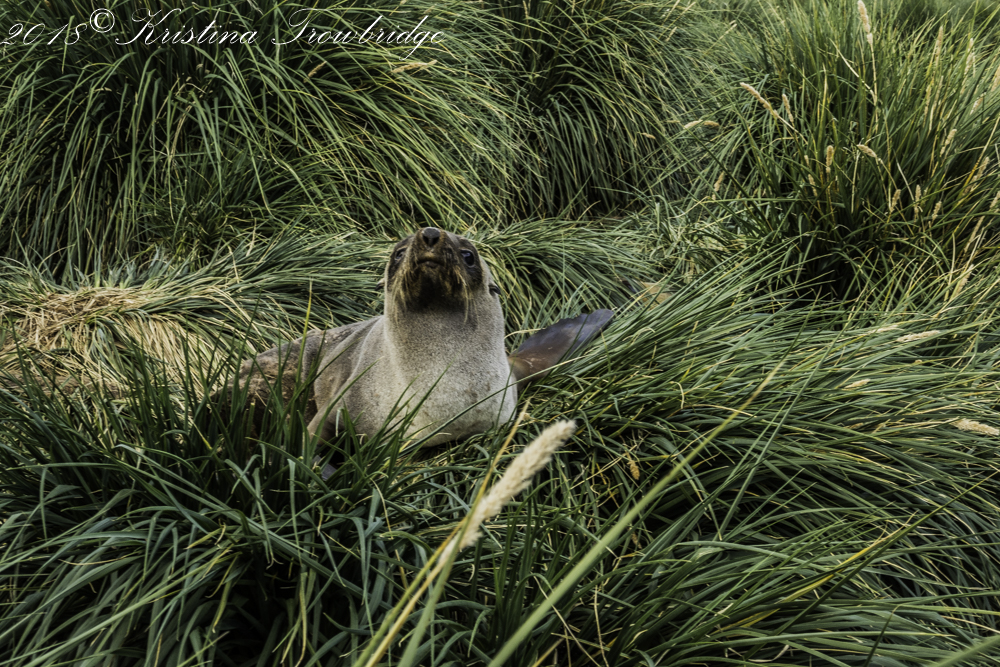 Fur seal in the Tussock grass