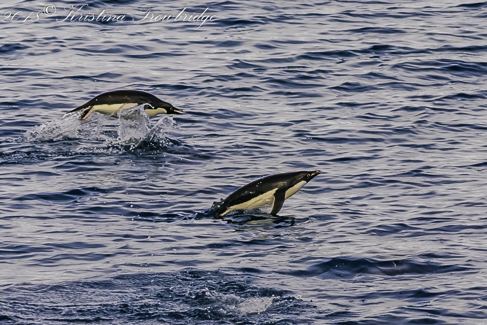 Adelie penguins porpoising