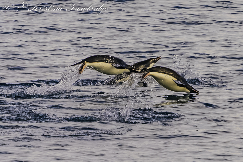 Adelie penguins porpoising