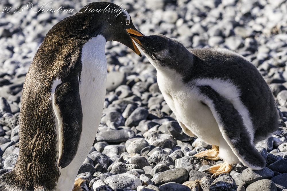 Feed me, Gentoo penguins on the beach