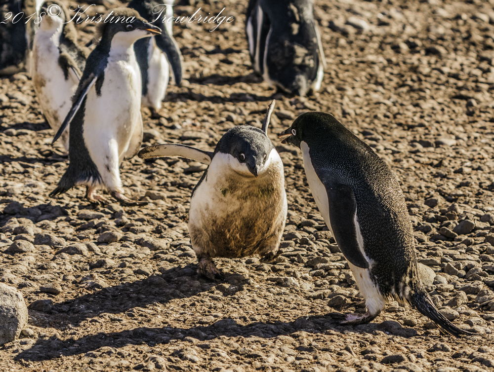 Adelie Penguin mom running from her chick