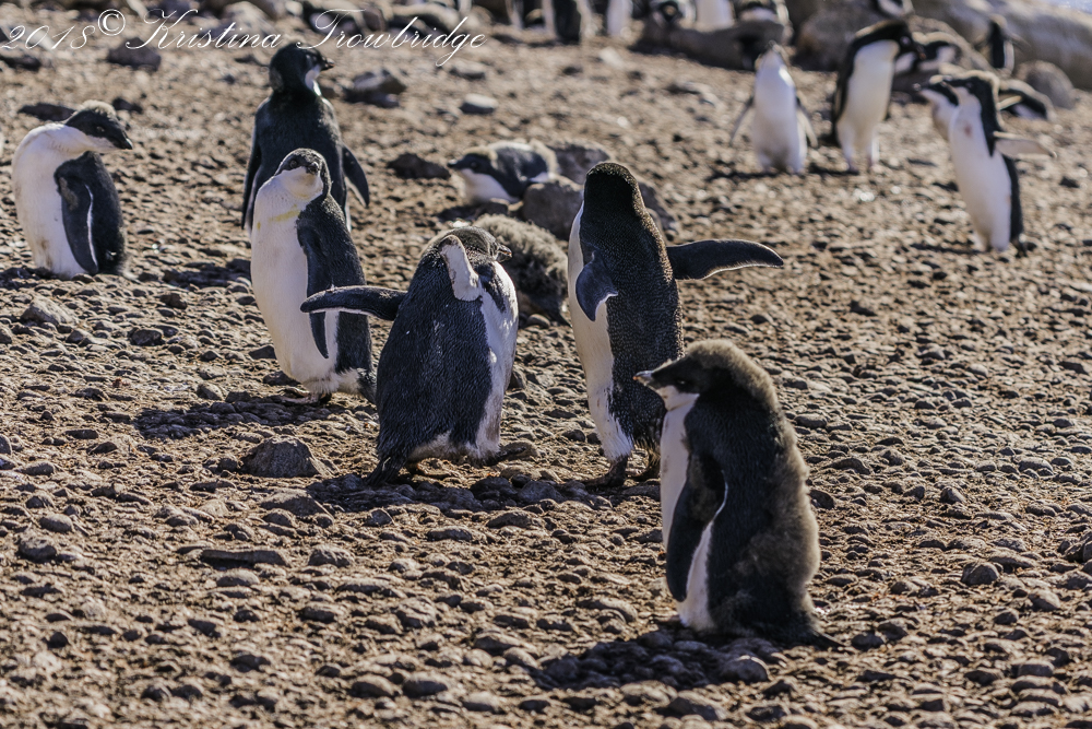 Adelie Penguin mom running from her chick