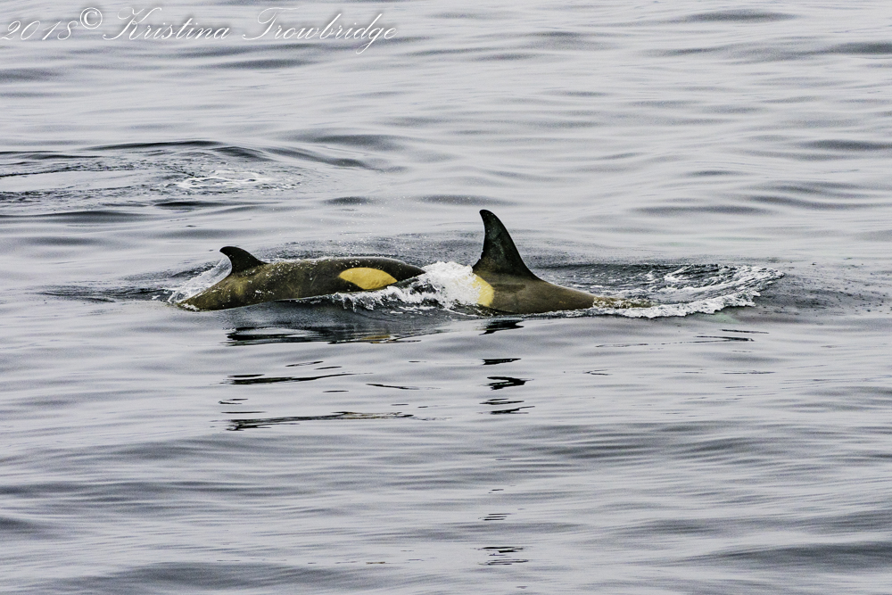 Mom and calf swim next to the boat