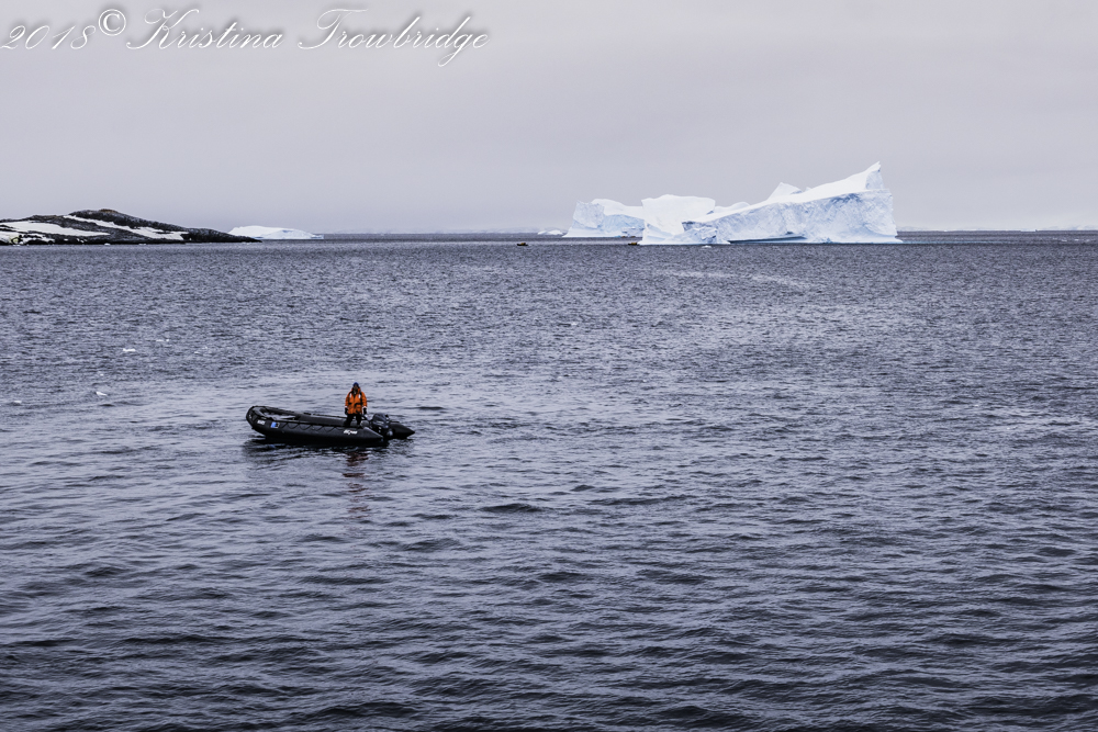 A rocky outpoint with icebergs