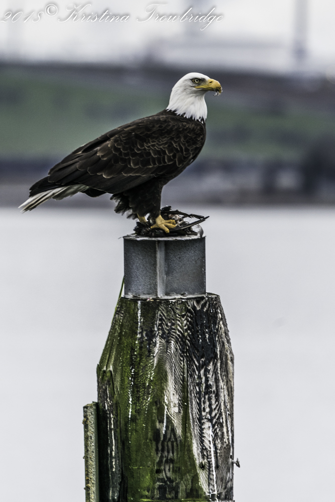Bald eagle landed with the kill