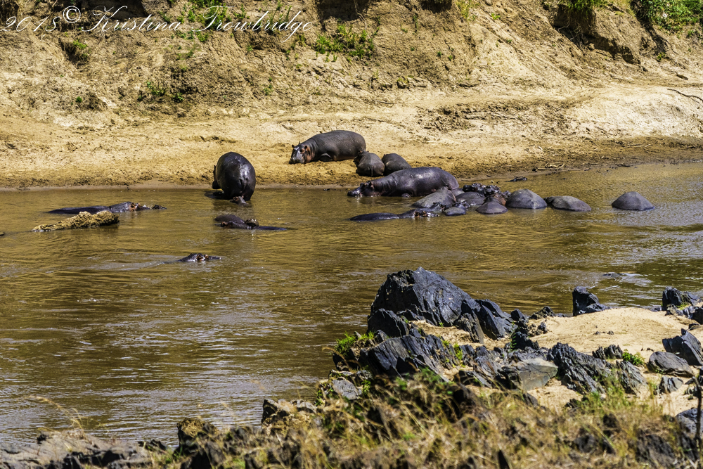 Hippos basking in the river