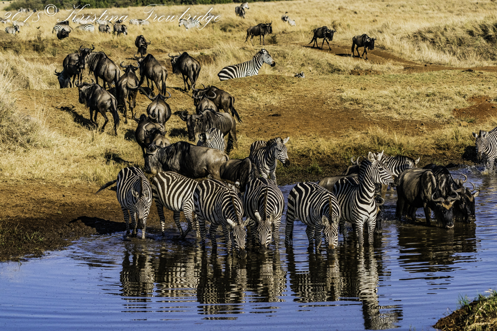 Bearded Wildebeests & Zebras drinking