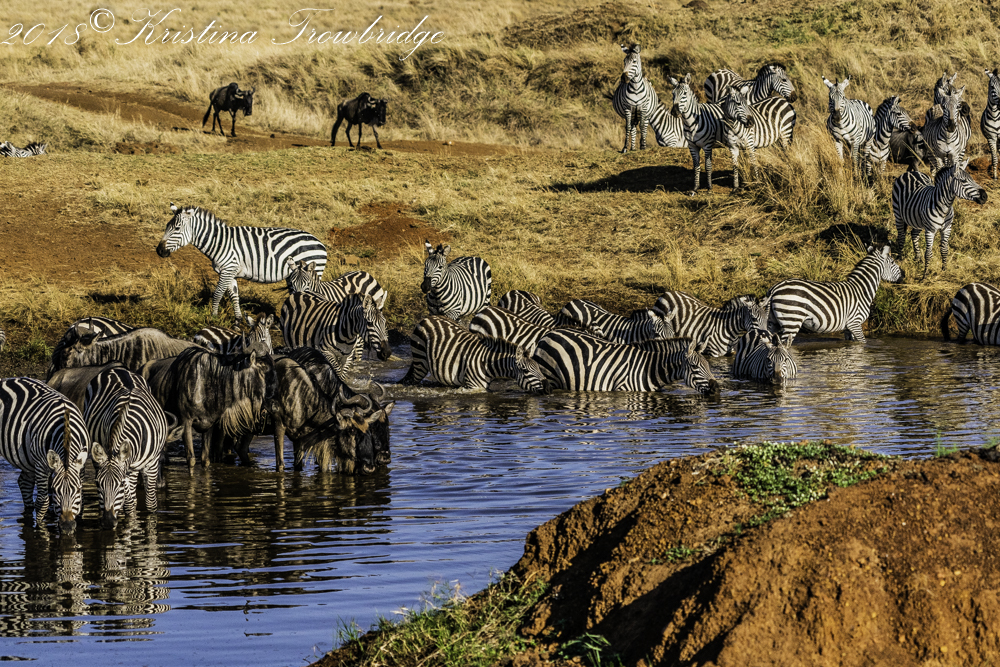 Bearded Wildebeests & Zebras drinking