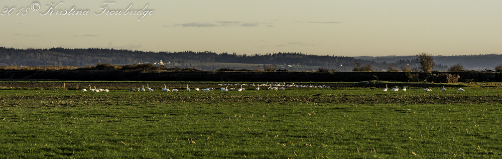 Swans and Snow Geese before sunset