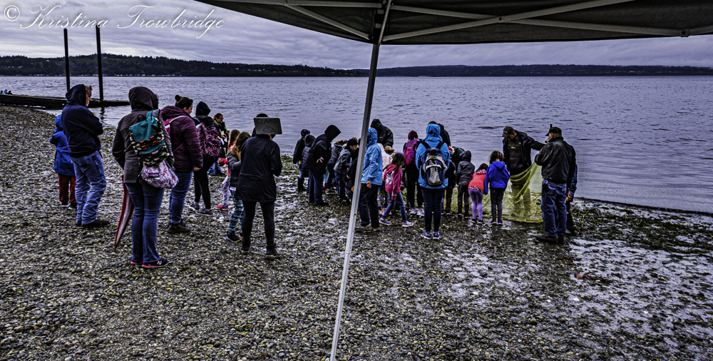 Kids learning in the rain on the beach