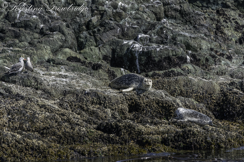 Gulls, Harbor seal with pup on Bird Rocks