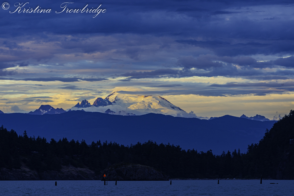 Mt. Baker at sunset into the Swinomish Channel