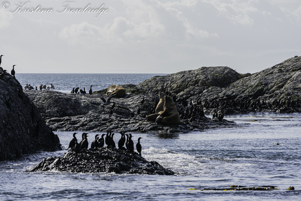 Cormorants and a Steller sea lions at Bird Rocks