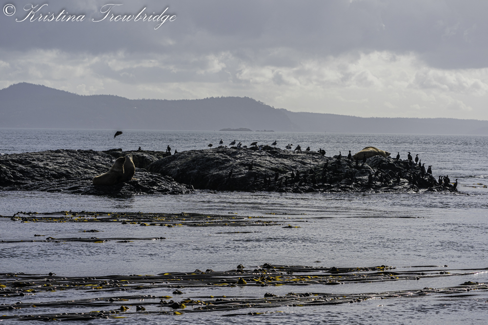 Cormorants and a Steller sea lions at Bird Rocks