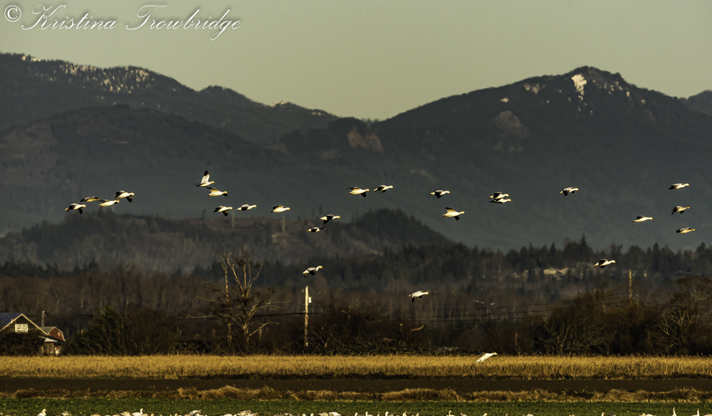 Mt. Baker at sunset with snow geese