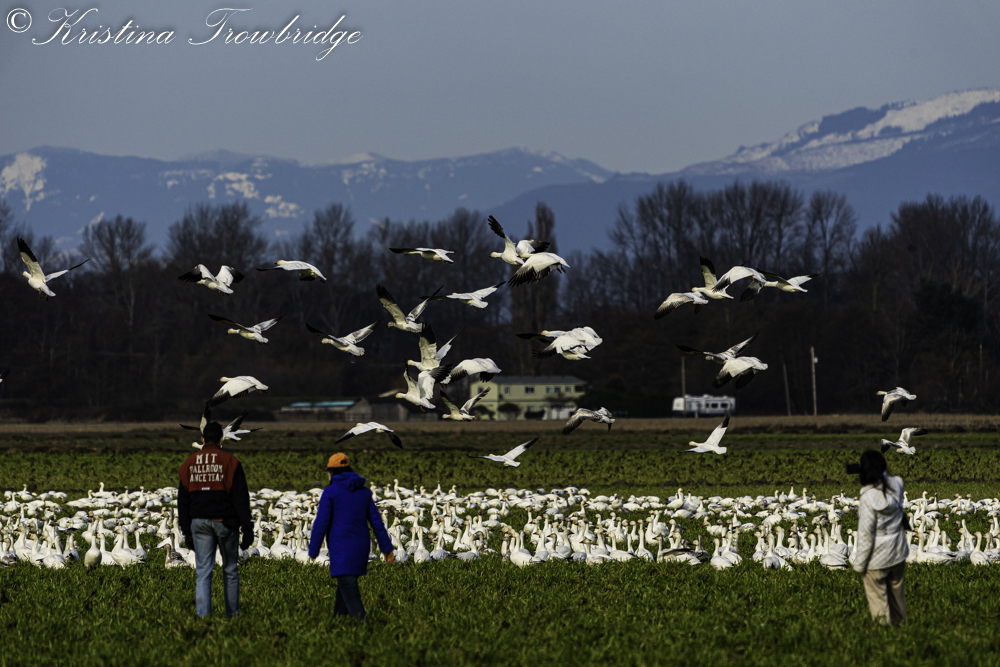 Family harassing the Snow Geese to fly
