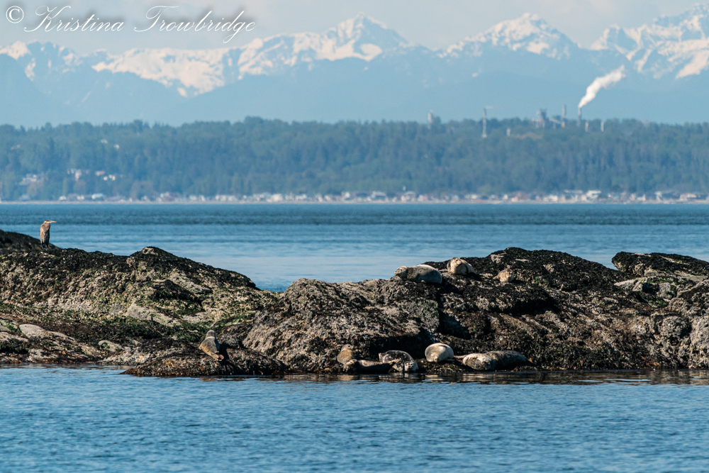Harbor seals & a Great Blue Heron