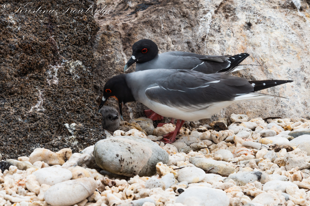 Swallow-tailed Gulls regurgitating for chick