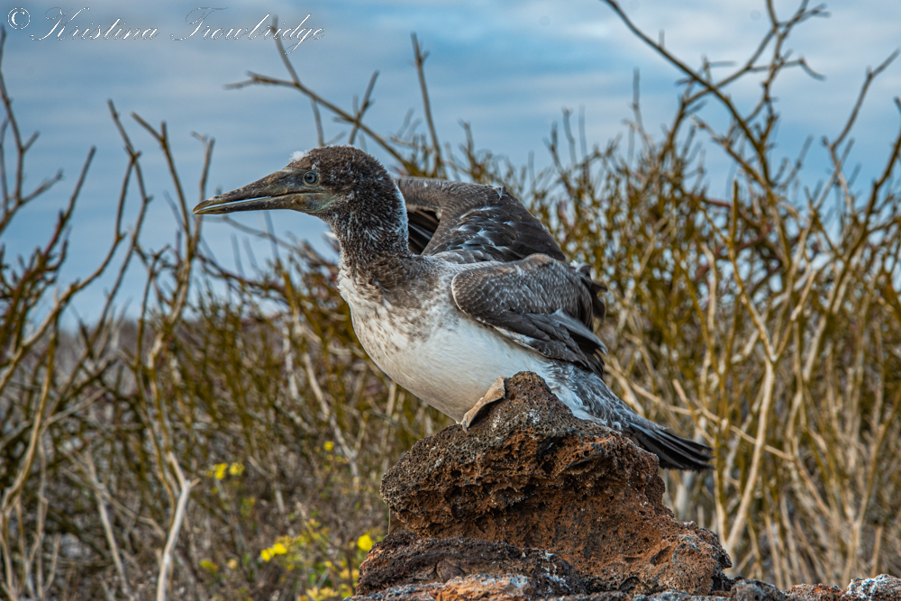 Nazca Booby chick trying its wings