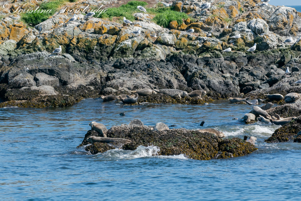 Pointer Island, gulls and harbor seals